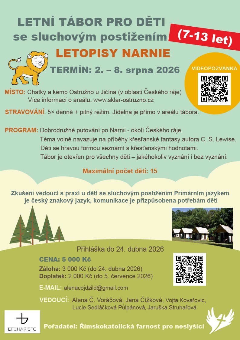(13. 4. 2026) Letní tábor pro děti se sluchovým postižením: 2. - 8. 8. 2026 Ostružno u Jičína